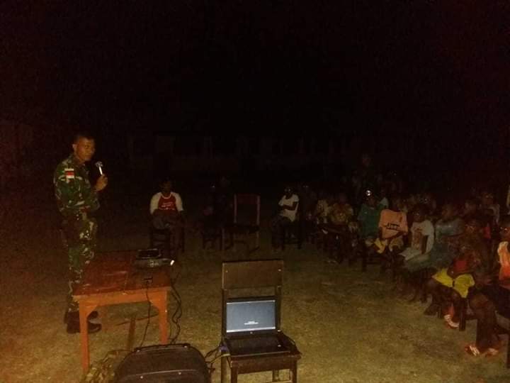 Salah satu contoh yang dilakukan dalam rangka untuk mendekatkan diri kepada masyarakat melalui kegiatan Teritorial sehingga terjalin hubungan yang kuat antara TNI-Rakyat. Satgas Pamtas Yonif Raider 509 Kostrad menggelar acara Nonton Bareng (Nobar) Malam Minggu bersama komponen Tokoh Adat dan masyarakat daerah Bompay, Kab. Keerom, Papua. Sabtu (14/12).