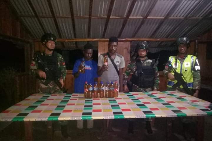 Tambah Mayor Inf Rizky, seperti yang kita ketahui bersama berdasarkan Perda Nomor 15 Tahun 2013 bahwa peredaran Miras ilegal sangat dilarang di Bumi Cendrawasih ini, atas kejadian tersebut tindakan yang diambil adalah melaporkan kepada Komando Atas dan menyita Miras lokal jenis Sopi untuk diserahkan kepada pihak terkait.