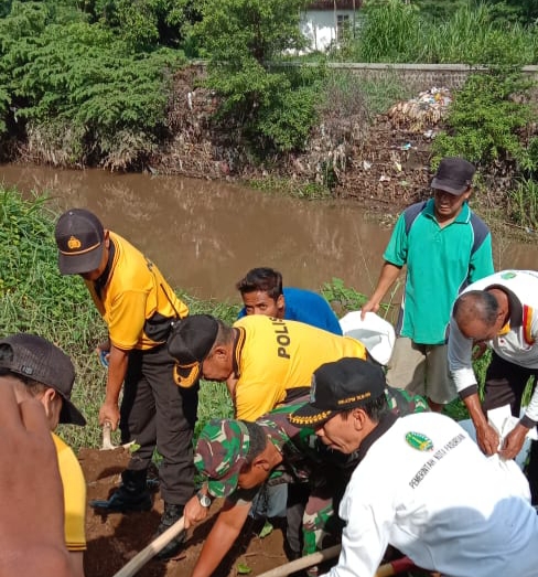 Pasuruan, Jatim, www.tribunus.co.id -Warga Karang Asem dan unsur Forum Komunikasi Pimpinan Daerah (forkompinda) kotan Pasuruan,Kerja bakti membersihkan aliran sungai Welang guna mengantisipasi banjir yang rawan terjadi di wilayah Kelurahan,karang ketug.