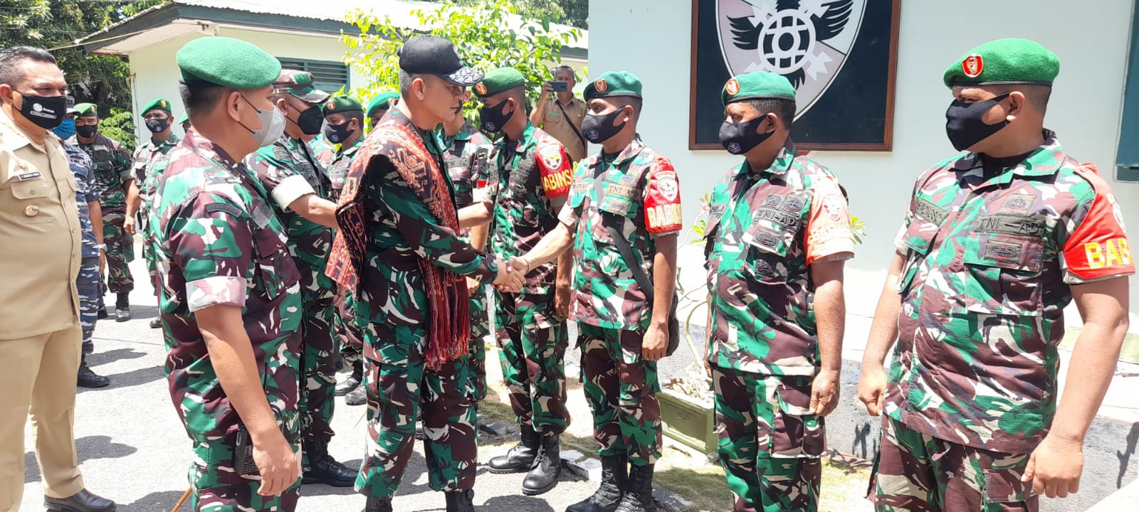 Setibanya di Makodim 1603/Sikka, Pangdam disambut Dandim 1603/Sikka Letkol Inf Muhammad Jafar disertai pengalungan Kain Tenun Adat Sikka oleh Bupati Sikka Fransiskus Roberto Diogo, S.Sos., M.Si., didampingi Forkopimda Kabupaten Sikka dengan penuh kekeluargaan.